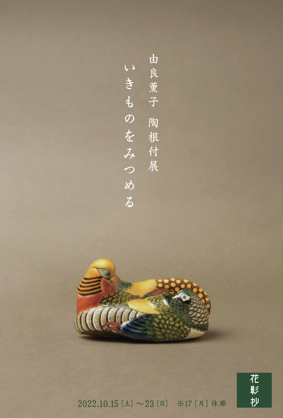 「生き物」を見つめてどのような形や色模様を引っ張り出し陶根付作品に凝縮させてくれるのか、とても楽しみな展覧会です。