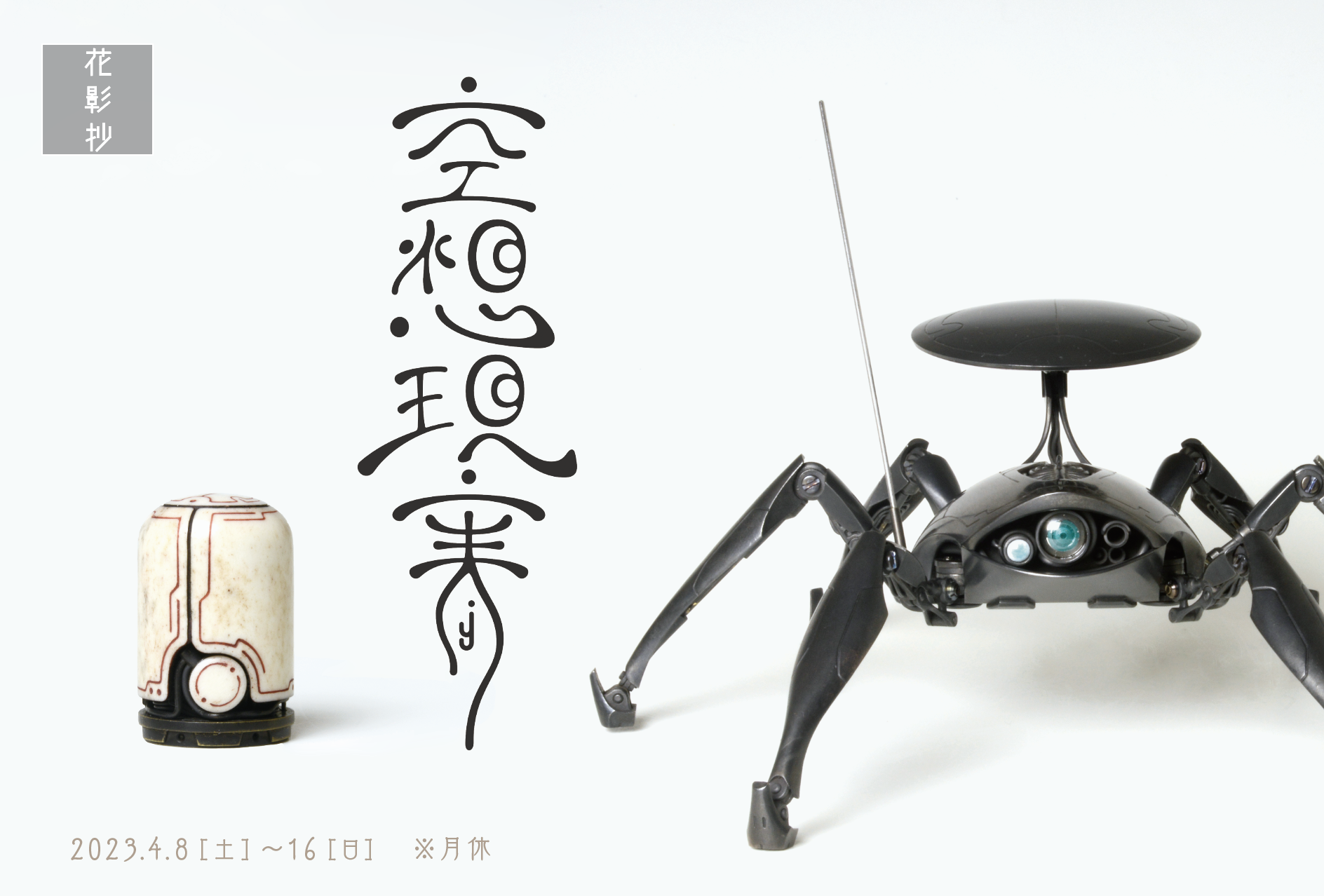 自身の中にあるSF的世界観を元に、全関節可動の置物や根付作品を展示します。