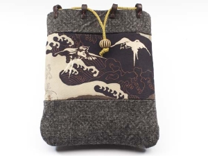 巾着(印籠型携帯電話入れ)・鱗柄に獅子図