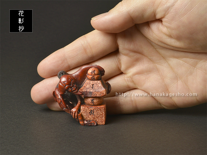 十九名の現代作家による、もののけ根付展「勿怪(もっけ)の幸い」 第四集 にて発表。漆使用。