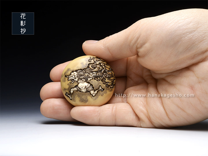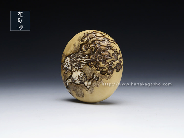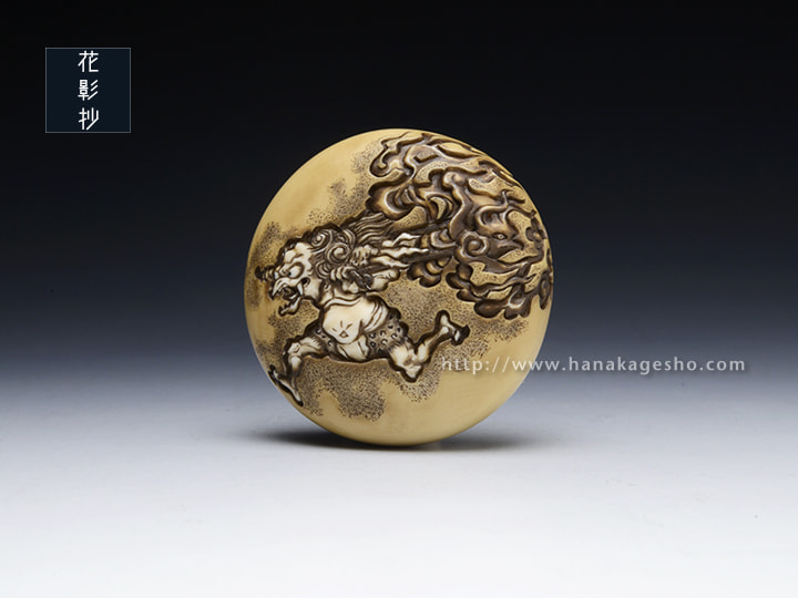 閻魔大王の命で、この世で悪行を働いた者を、火焔燃えさかる車を引いて迎えに来る鬼を、あるいは、この車自体を「火車」というそうです。『百怪図巻』という、江戸時代の絵巻の中の「火車」の図を、大いに参考にしました。(安剛)