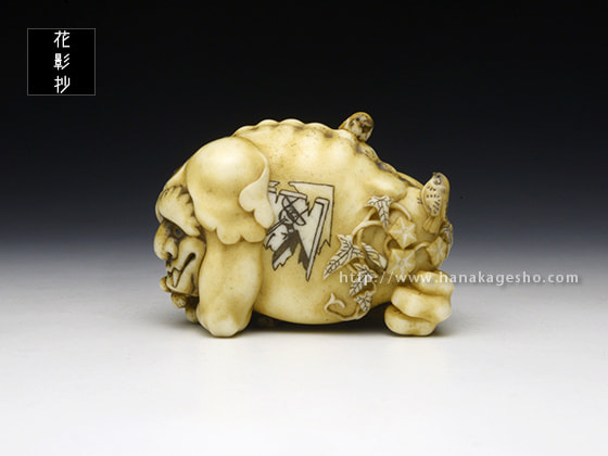 戦後の昭和20〜30年代の街角のイメージ。ぬりかべ扮する壁には、ヒルガオが繁り、破れたポスターもみえる。カルピスは大正13年からこの図案を使っている。(安剛)