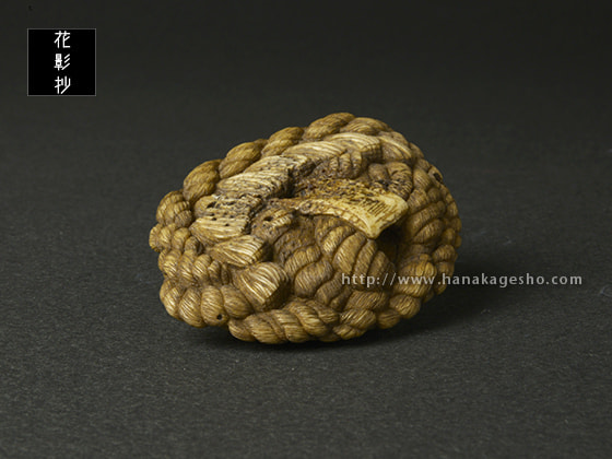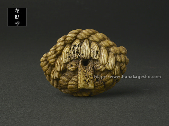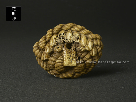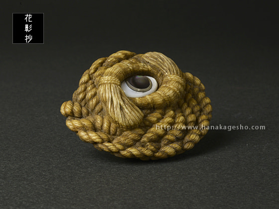 「この根付は結界の中にいるモノ。そしてそのモノの力を借りて守護する系のお守りとして制作しました。注連縄は結界を作るパーツの一つで、よく神社の結界に用いられています。境界を作る、不純なものが入るのを防ぐ、清らかな場所にする、神々にとって居心地が良い空間にする効果があるといわれています。そして邪視除けの眼モチーフの強い「ナニカ」をそこに居させることによって持ち主に来る邪を退けるというコンセプト根付です。「私は マドウグ=ネツケ コンゴトモヨロシク」 みたいな感じ」(道甫)
