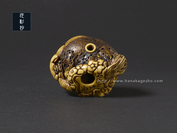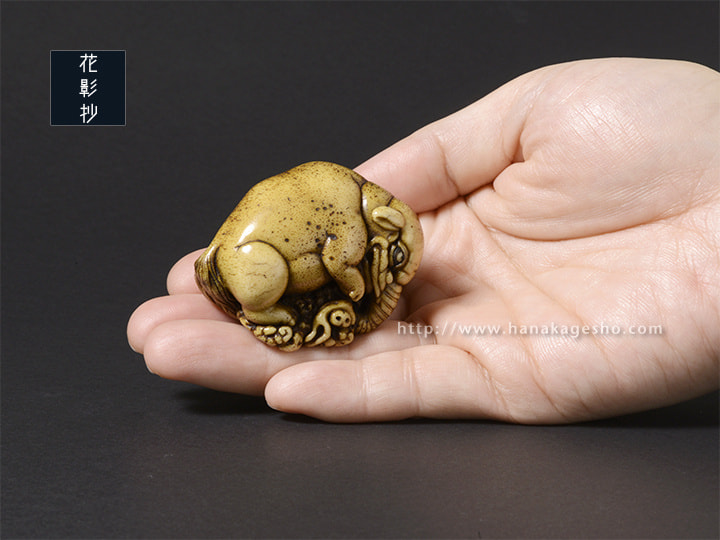 伊藤若冲「象鯨図屏風」にインスピレーションを得て、丸みの美を彫りたいと思い形にしたもの。夢に出てくる怪を喰らう守り獏。(道甫)
