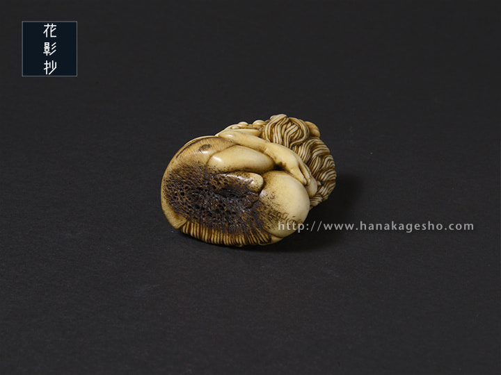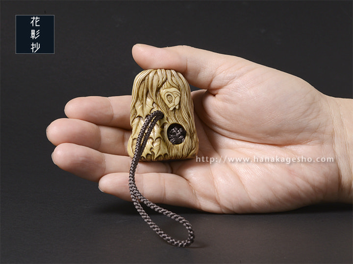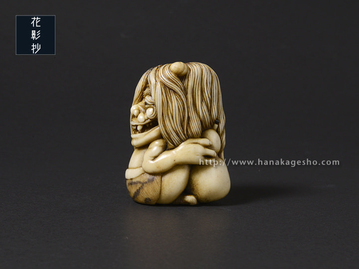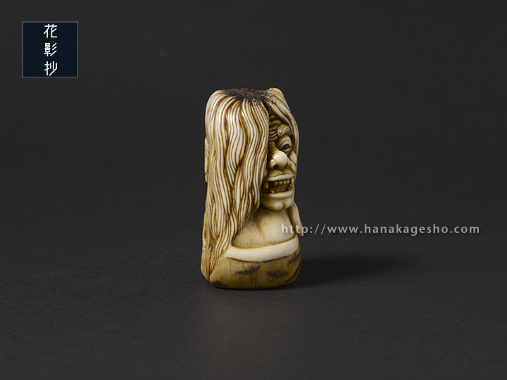 酔いの力を得れば困難でも流れ越えれる強い鬼という題材で彫りました。民芸・工芸品で西洋デッサンにない、奇妙な造形を表現しました。(道甫)