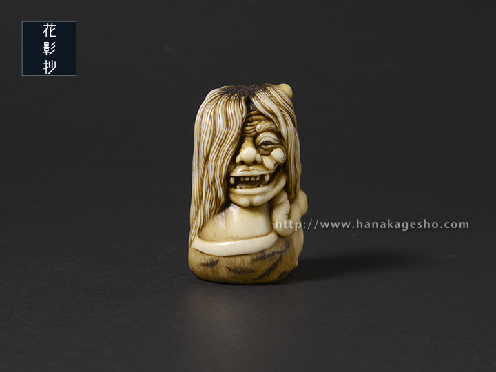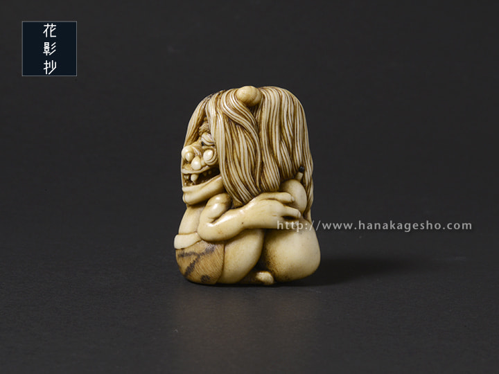 酔いの力を得れば困難でも流れ越えれる強い鬼という題材で彫りました。民芸・工芸品で西洋デッサンにない、奇妙な造形を表現しました。(道甫)
