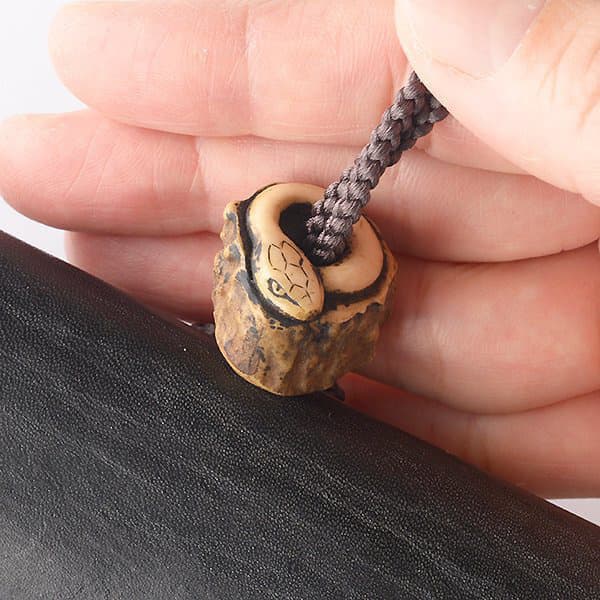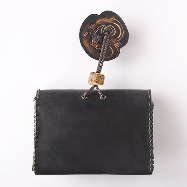 根付;黄楊、漆 緒締;鹿角 前飾り;象牙 提物;牛革