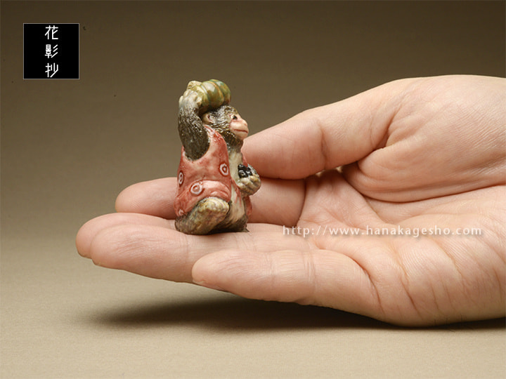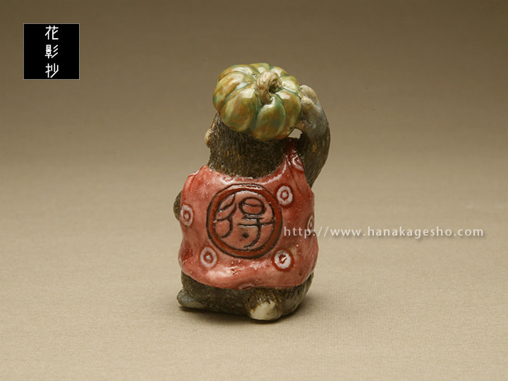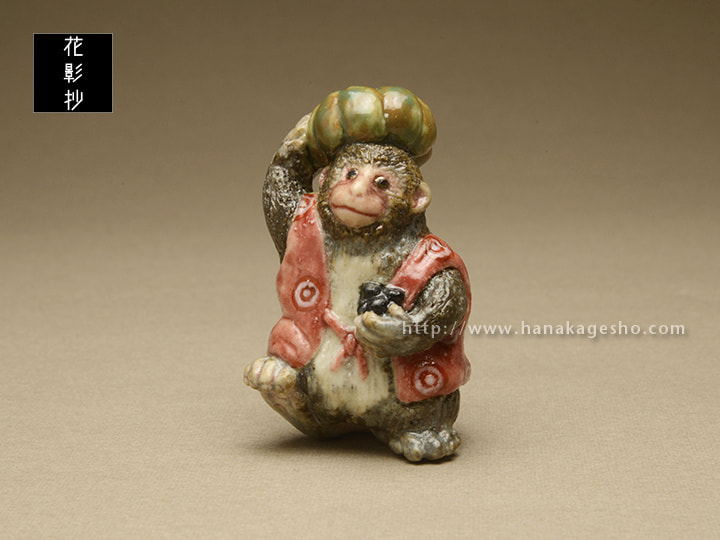 サルという言葉は「去る」に通ずるとして忌詞とすることが多く、特に一日の運勢を決定する朝の間には嫌いました。いろいろな代用の言葉トッツァ、ヤマノオッサン、ヤマノジイサン、キムラサン(気分がむらな気分屋だから油断できない)のほか、サルを祝い直して「得手吉」「得手公」と呼びました。逆に「難が去る」として魔除けにすることもあるようです。朝、サルと誤って言ってしまった場合「クロマメナンキン」と唱えればよい、あるいは「イヌ」と言い返せばよいとか。あらかじめ黒豆と南京を持って現れたエテキチ君です。(泉水)