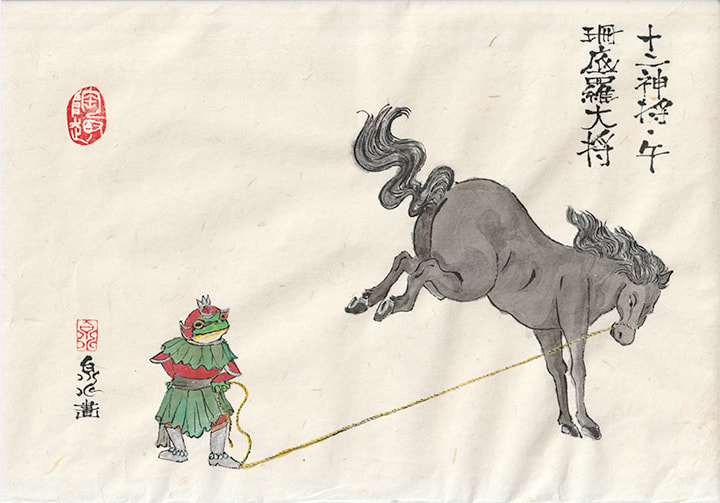 彩色運筆 十二神将 珊底羅大将 黒い馬