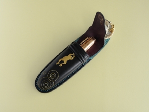 革(万年筆ケース)、鹿角、シルバー(根付)