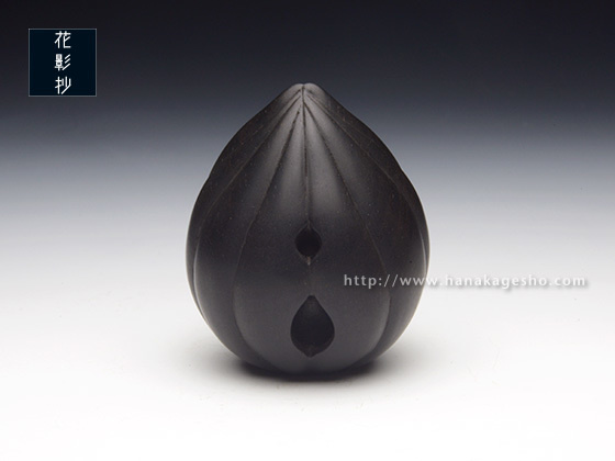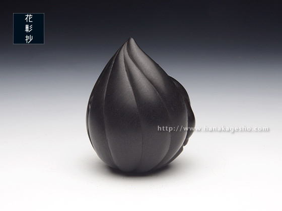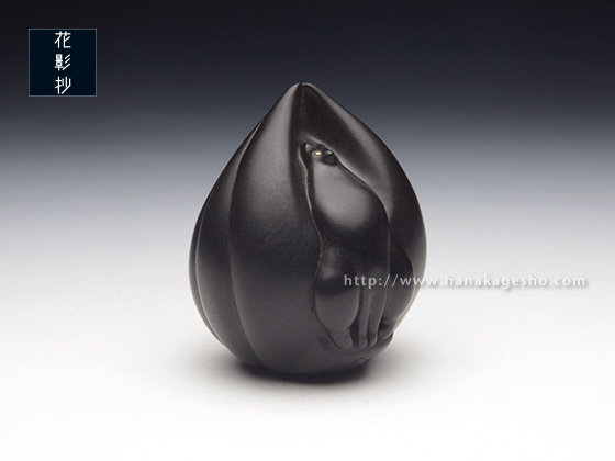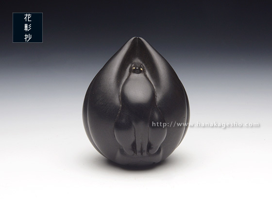 狐の妖怪と言えば九尾の狐ですが、九尾の狐の帯留を制作した際に九尾以外の本数の狐はいるのだろうか?と思い調べてみましたところ八尾の狐という尻尾が八本の謂れがある狐を見つけました。三代将軍徳川家光の夢に現れ、病気が治るとのお告げを授けられたので夢に現れた狐を鹿野探幽に描かせた。その『八尾狐図』をもとに製作しました。狐の足元には、安倍晴明、古来からの邪気を払う魔力、病の治るお告げのつながりで桃を彫りました。