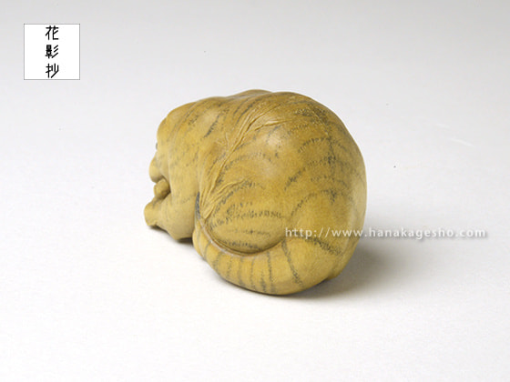 虎の黒目は丸い形をしていますが江戸時代の絵では縦長の形で描かれているものも多いです。虎の毛皮だけは見た事があっても本物の虎を見たことがないので、目は猫と同じに描いてしまったのでは?と云われています。(かぶ)