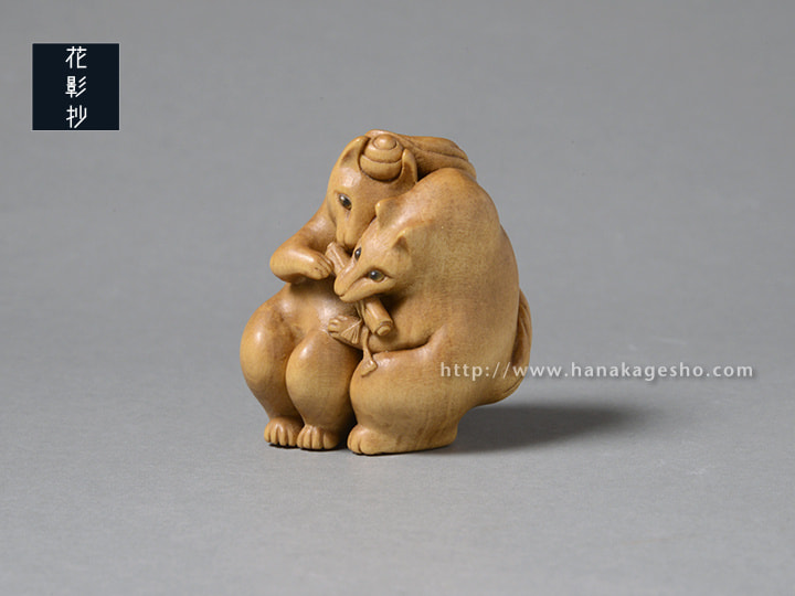 普段はお社の前で向かい会っている狐たちですが、闇夜の晩にはたまにこうして寄り添い合っているのです。(蕪)