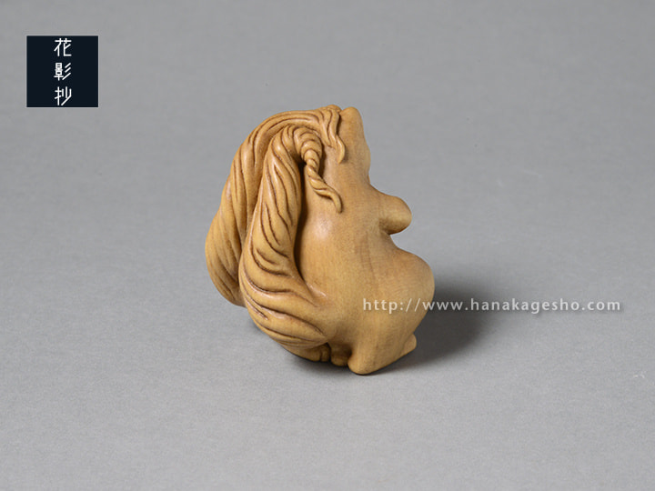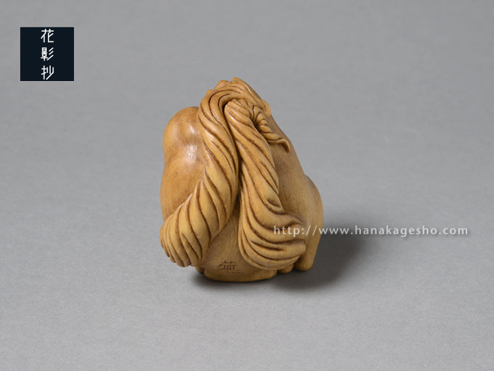 御蔵島産黄楊 象嵌:羊角、金箔、漆