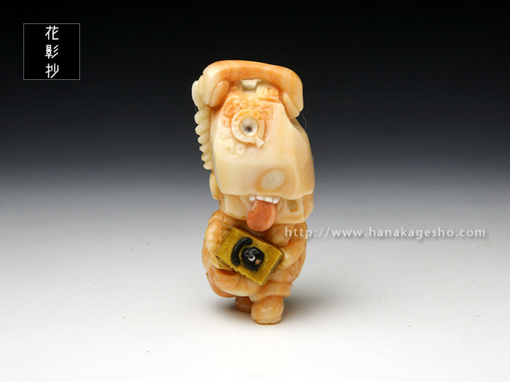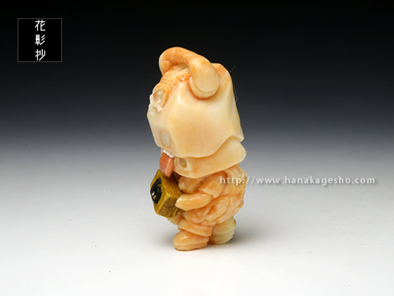 桃珊瑚 象嵌:水晶、黄楊、水牛角、猪牙