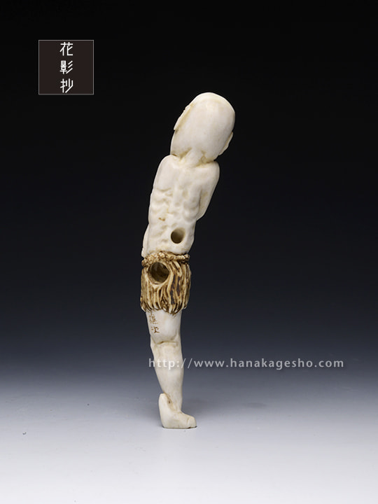 鹿角・象嵌:猪牙(歯)、珊瑚(舌)、鹿角、水牛角、水晶(目)