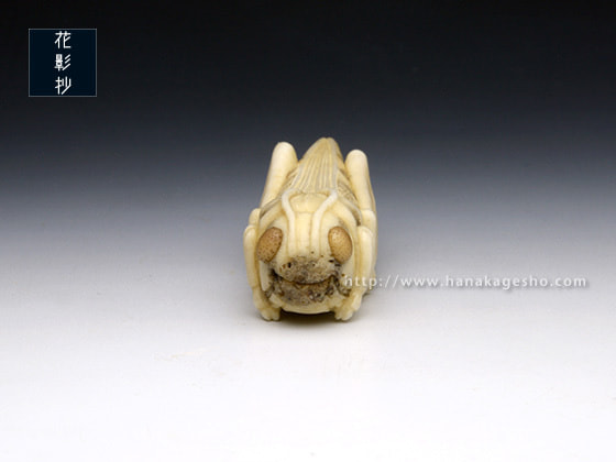 「バッタはその特徴的な外見もさることながら、特にトノサマバッタの後脚にあるV字の模様が美しいと感じます。有名な話ですが、とある特撮ヒーローのモチーフになった昆虫でもあったり…。生態を紐解くとなかなかに怖い種なのですが、可愛げを宿せるように制作しました。ぜひお手に取ってご覧ください」(カタクラケンタ)