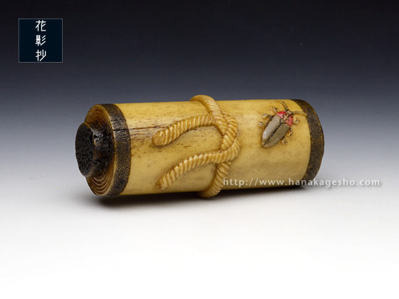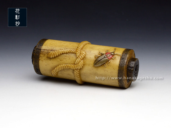 「“螢雪の功”という言葉があります。最近まで昆虫それ自体をメインのモチーフとして扱ってきたのですが、虫に関する故事を取り上げてみたらどうだろうと考え制作しましした。根付に限らずですが、どんな状況でも学ぶ心は忘れずにいたいものです」(カタクラケンタ)