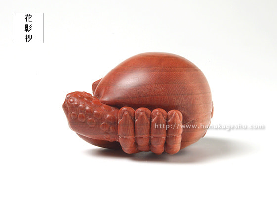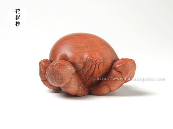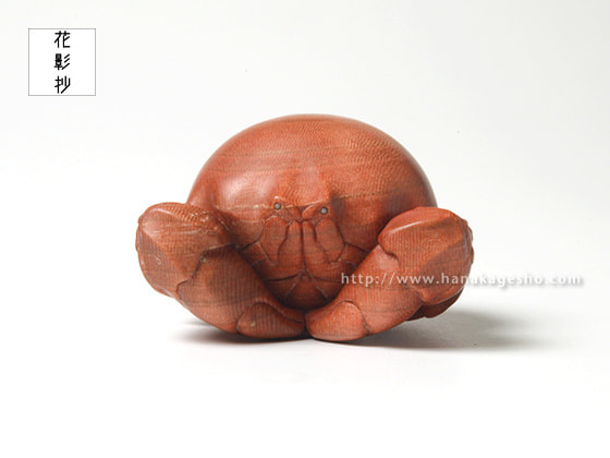 「握った拳のような見た目から名付けられたコブシガニという生き物がモチーフです。甲殻類を制作する際に鋏を合わせるような構図を作ることが多いのですが、ヒトで例えると手を合わせるような仕草を思い描いています。今作では殊更に座禅を組んでいるような、はたまた祈るような出立ちとなりました。改めて完成した作品を振り返ると「握るべきは拳ではなく掌だ」そんな言葉が頭をよぎります。」(カタクラ ケンタ)