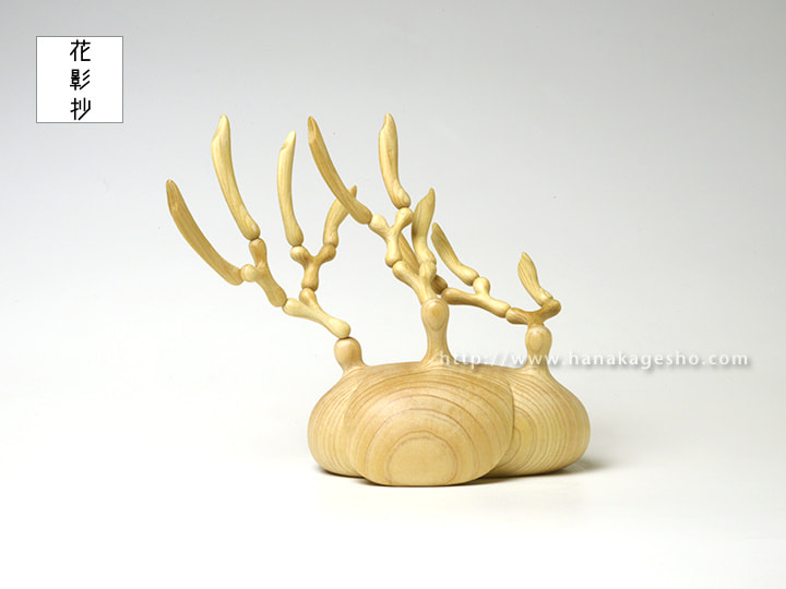 「連作《終わりへのスタディ》。このシリーズは自身に必ず訪れるであろう ”死 “に対し、その恐ろしさを和らげるというテーマから制作を開始しました。美術史を紐解いてみるとメメントモリ (ラテン語で「死を忘ることなかれ」という意、今生を楽しもうという趣旨にもとれる )という言葉が存在するように、「生と死」にまつわる主題自体は現代に至るまで語り尽くされているのでは?と思えるほどに多くの作家たちが扱ってきた人類に共通する普遍的なテーマと言えます。そこにあって自身がテーマに扱う動機として、人類全体がどうというよりもまず制作行為を通して自身が抱える漠然とした死の概念を補完することとしました。死の受け止め方に対する観念を充実させるのは宗教や哲学の役割でもあると考えているのですが、決して信心深くもなく主義思想も希薄な環境で育った自分にとって日々の生活の中で死を意識させられる印象深い物と言えば桧でできた仏壇といった形式的な仏具しか存在しませんでした。後に勉学として哲学にも触れますが、どこか当事者性に欠けるような印象しか持てず現実感に結びつかなかったと記憶しています。一連の作品はそんな精神的な寄る辺を持たない自身がどうしようもなく迫る死に対して、そのものを捉え直す事で少しでも安らかな終わりを迎えられないだろうかという試みでもあります。作品の土台にあたる部分は生物が倒れ伏している姿や折れた樹木であったり加工された肉としての姿などを抽象的に造形しており、各作品はそんな骸を模した土台から分裂する細胞のような節を広げ、周囲に記号的な形状の突起を伸ばしています。それらは土台と突起物の関係や「魂の所在」「肉の記憶」といった副題とともに複数の側面から死という事象に対する問いを投げかけます。個展「彼我の境」の開催にあたり、工藝・民藝の文脈を組みながら生物を主なモチーフとして具象的な表現で発表している根付彫刻の対比として、死の概念にアプローチする抽象的な立体造形作品を置くことで自身の表現における境界をも探るような展示としました」(カタクラ ケンタ)