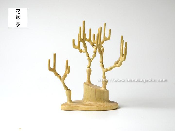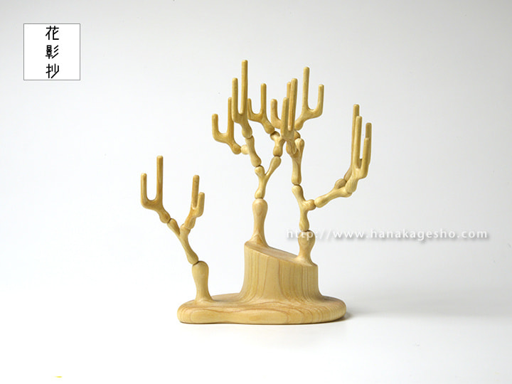 「連作《終わりへのスタディ》。このシリーズは自身に必ず訪れるであろう ”死 “に対し、その恐ろしさを和らげるというテーマから制作を開始しました。美術史を紐解いてみるとメメントモリ (ラテン語で「死を忘ることなかれ」という意、今生を楽しもうという趣旨にもとれる )という言葉が存在するように、「生と死」にまつわる主題自体は現代に至るまで語り尽くされているのでは?と思えるほどに多くの作家たちが扱ってきた人類に共通する普遍的なテーマと言えます。そこにあって自身がテーマに扱う動機として、人類全体がどうというよりもまず制作行為を通して自身が抱える漠然とした死の概念を補完することとしました。死の受け止め方に対する観念を充実させるのは宗教や哲学の役割でもあると考えているのですが、決して信心深くもなく主義思想も希薄な環境で育った自分にとって日々の生活の中で死を意識させられる印象深い物と言えば桧でできた仏壇といった形式的な仏具しか存在しませんでした。後に勉学として哲学にも触れますが、どこか当事者性に欠けるような印象しか持てず現実感に結びつかなかったと記憶しています。一連の作品はそんな精神的な寄る辺を持たない自身がどうしようもなく迫る死に対して、そのものを捉え直す事で少しでも安らかな終わりを迎えられないだろうかという試みでもあります。作品の土台にあたる部分は生物が倒れ伏している姿や折れた樹木であったり加工された肉としての姿などを抽象的に造形しており、各作品はそんな骸を模した土台から分裂する細胞のような節を広げ、周囲に記号的な形状の突起を伸ばしています。それらは土台と突起物の関係や「魂の所在」「肉の記憶」といった副題とともに複数の側面から死という事象に対する問いを投げかけます。個展「彼我の境」の開催にあたり、工藝・民藝の文脈を組みながら生物を主なモチーフとして具象的な表現で発表している根付彫刻の対比として、死の概念にアプローチする抽象的な立体造形作品を置くことで自身の表現における境界をも探るような展示としました」(カタクラ ケンタ)