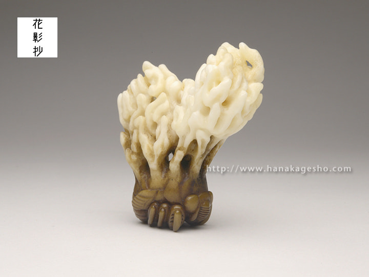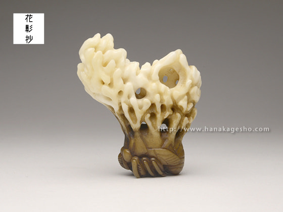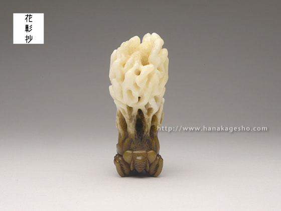 夏頃に制作していた冬虫夏草の根付なのですが、完成当時「少し時間を置いて見てみよう」と手元に置いていた作品です。虫に菌類が寄生することで生まれるのが冬虫夏草というものですが、私が知る限り私自身の肉体は他の生物に寄生されたという経験はありません(恐らく無いはずです…)。なので、率直な疑問として寄生されるということはどういうことか? 宿主は生きながら寄生者の意識を感じるのか? 寄生者との自我の境界は失われるか? むしろ宿主の性質が寄生者に流れ込むのでは? というような思考が制作のきっかけとなりました。改めて見てみると、具象としての昆虫とあえて本物のセミタケではなく抽象的な造形を合わせたことで、互いに引き立て合うような関係の作品になったと思います。(カタクラケンタ)