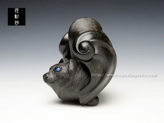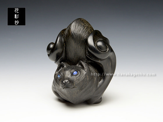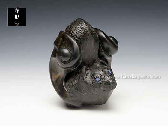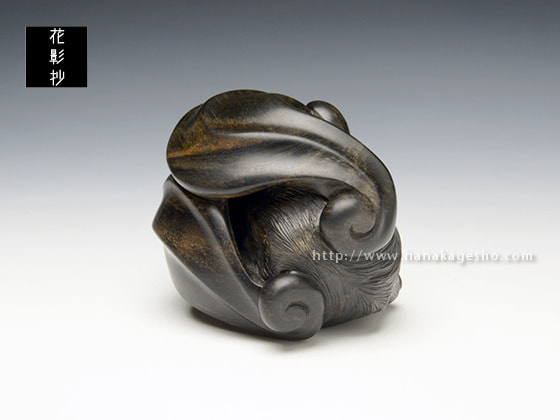 今作はオオコウモリをモチーフに翼部分に大きくデフォルメを加え、根付らしい手触りの良い形を目指して制作しました」(中梶真武)