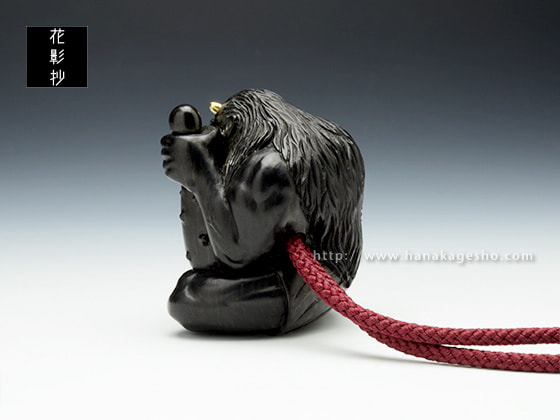 子猿鏡蓋根付「吉、引きました。よし!!」