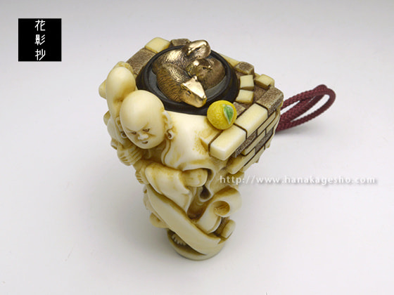 象牙 象嵌:10金、黒檀、羊角、岩絵具、酸性染料