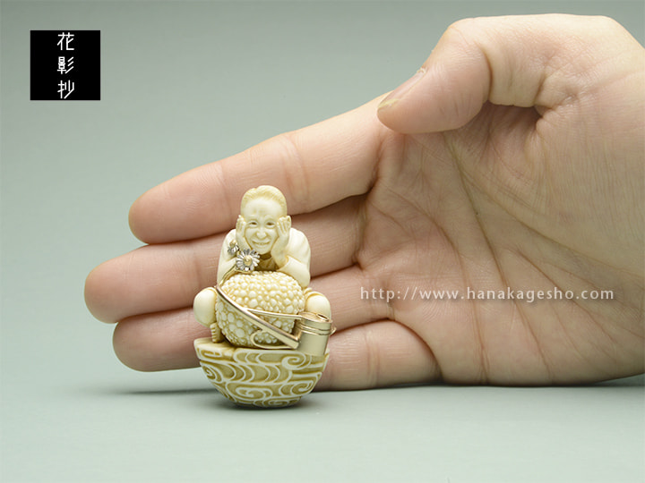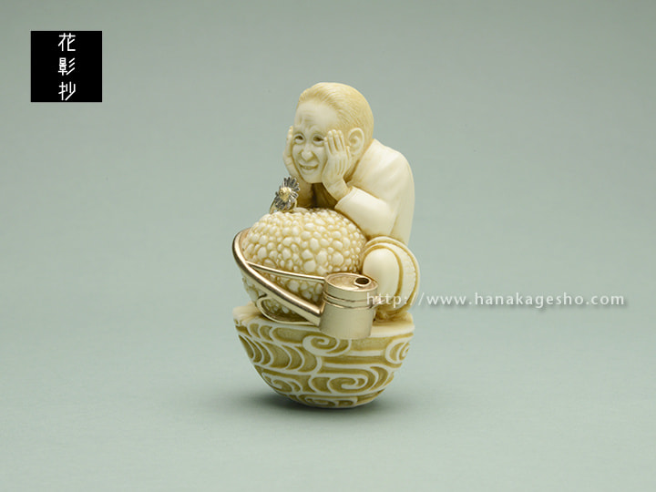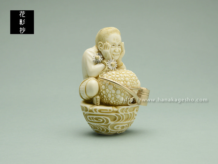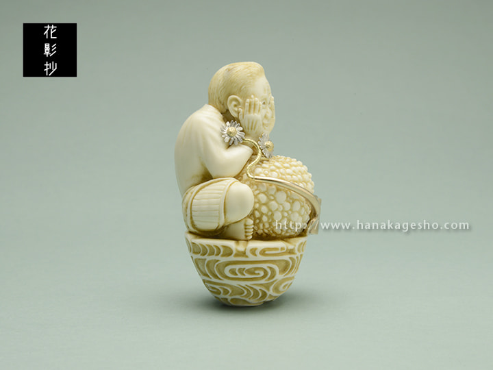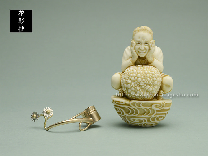 象牙、銅(如雨露)、プラチナ900(舌状花)、金18(筒状花)、真鍮(茎)