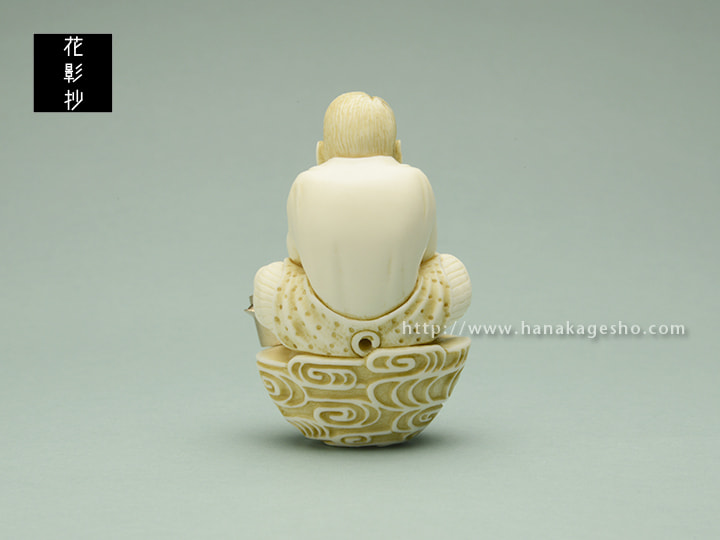 「日本の植物学の父」と呼ばれた牧野富太郎がモチーフ。植物研究にとてつもない情熱や愛情を持って打ち込んだ姿に神様と称し題名としました。生命の源の水をモチーフとした台座に腰掛けカボチャを前に微笑む主人公。如雨露の先からは牧野富太郎が発見し命名した植物のひとつ「野路菊」が凜と咲いていますが、野路菊は万征の出身である兵庫県の県花となっています。(万征)