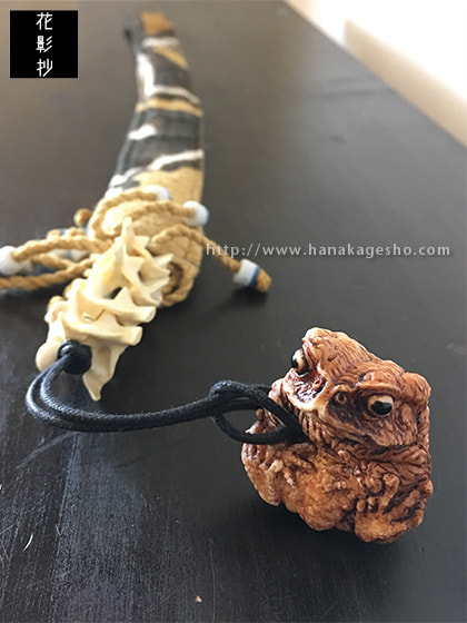 布製ウォレットコード、ニホンヒキガエル丸根付付き。