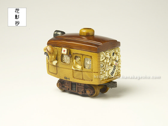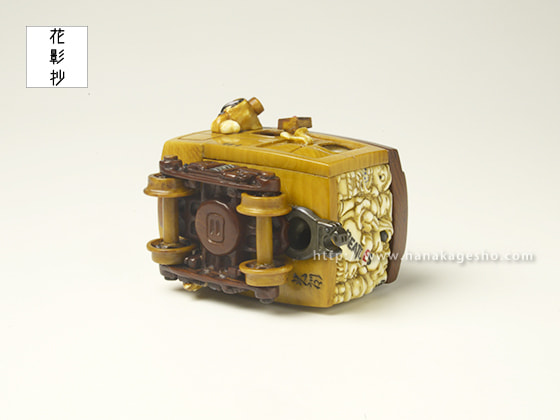 根付:4.9 × 4.2 × 3.5 cm 台座:5.4 × 4.7 × 2.1 cm