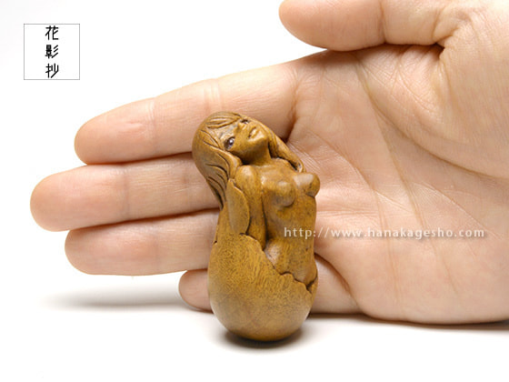 「卵生少女シリーズは何作か作っていますが、人間なのに卵生というファンタジー性と、生まれたばかりの無垢な存在であるところが気に入っています。何にも染まっていないからっぽの状態という点では、今回の“からの依り代”にふさわしい作品であると考えています」(永島信也)