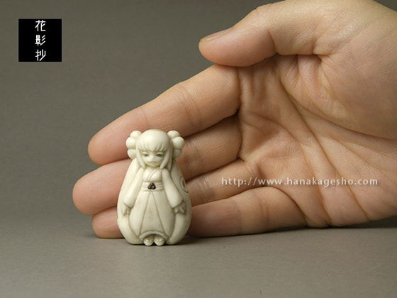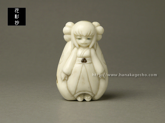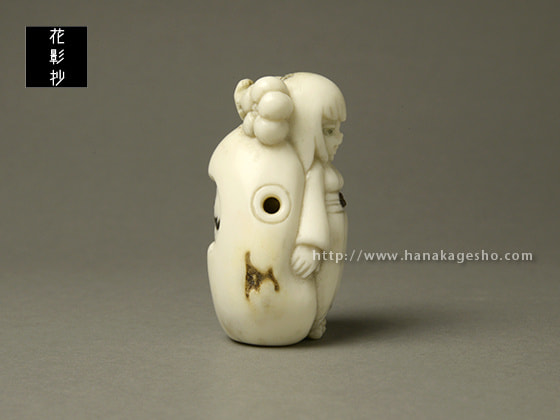 鹿角 象嵌:ガラス、水牛角、岩絵具