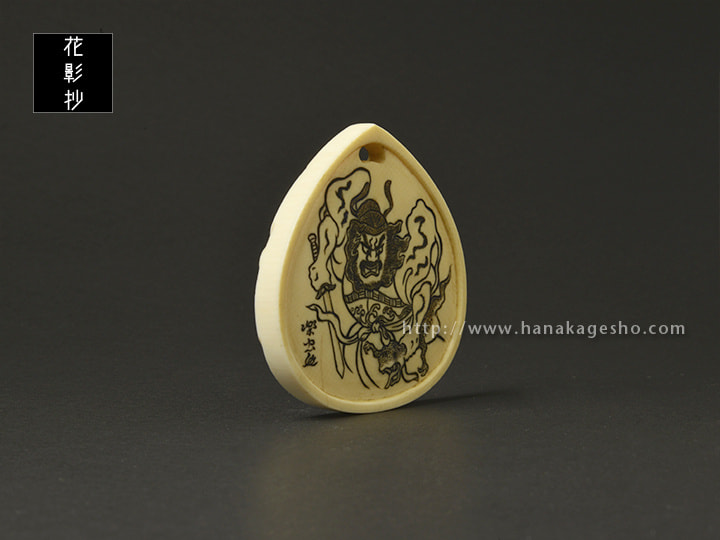 江戸時代、コレラが流行した際に邪気を断つ効果があるとして庶民に流行した白澤の御札を現代風にアレンジしてみました。裏面はこれまた疫病神を追い払い、魔を除くという信仰を集めた鍾馗の図。(楽虫)