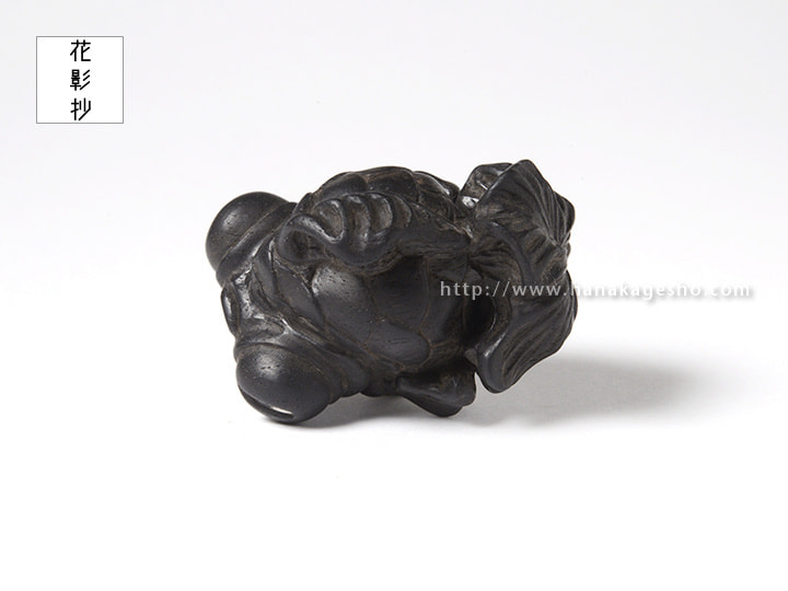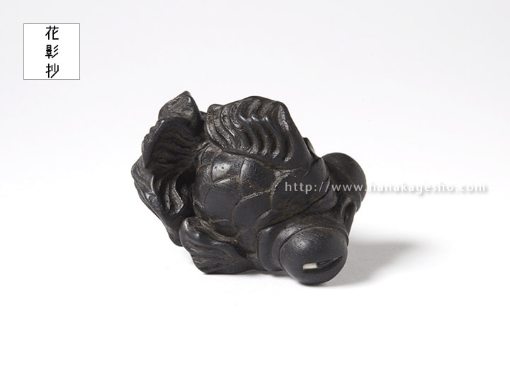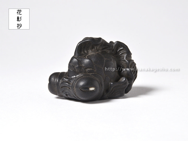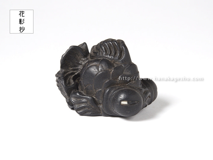 武士の魂が宿った鋭い眼光をした出目金を制作しました。変り兜のような雰囲気を意識していまして、目を日本刀の形にしています。(利歩)