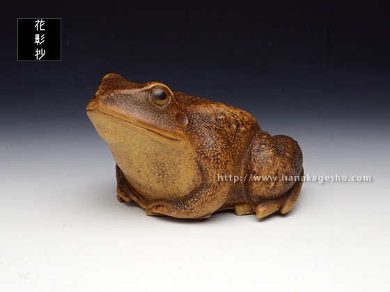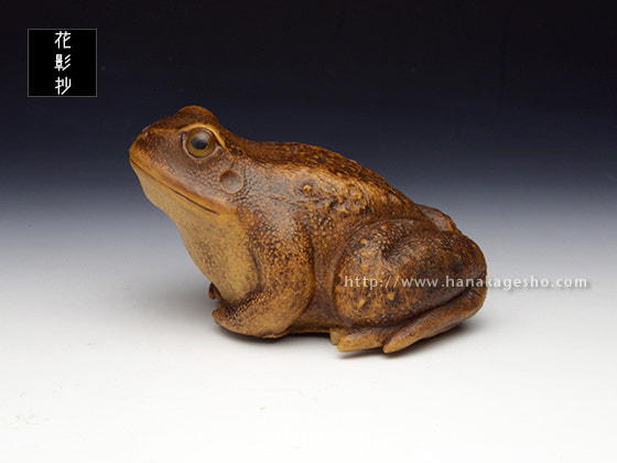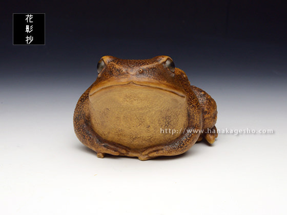 は、大国主命と少名彦神との出合う神話に出てきます。『船に乗った小さな神が近づいてきた。そこで大国主命が“あなたは何という神ですか”と尋ねたが答えない。そこで大国主命は自分に従っている神たちに、“この神を知っているものはいるか”と尋ねてみたが、誰も知るものはいなかった。このとき多邇具久(蟇蛙)が“これについては久延毘古(案山子)がよく知っているはずです”というので、早速、久延毘古を呼んで聞くと“この方は神産巣火神の子で、名を少名彦神といいます”と答えた』……というだけの神話ですが、多邇具久は物知りの蛙の神だとか」(紫苑)