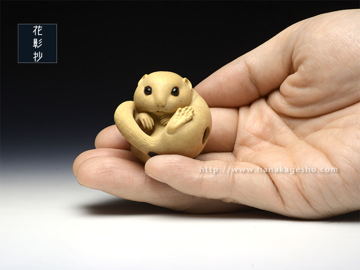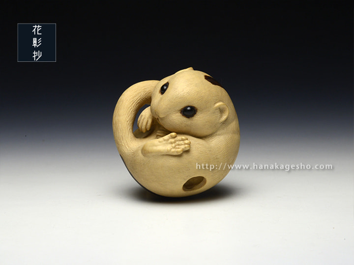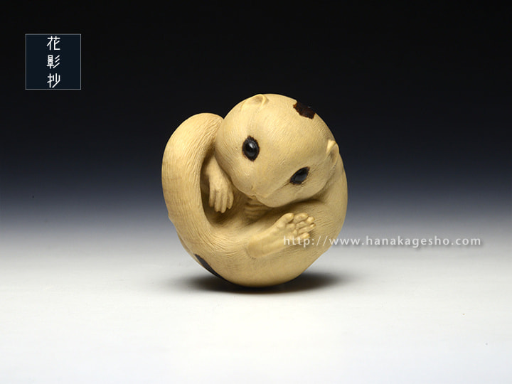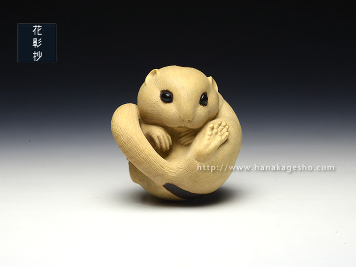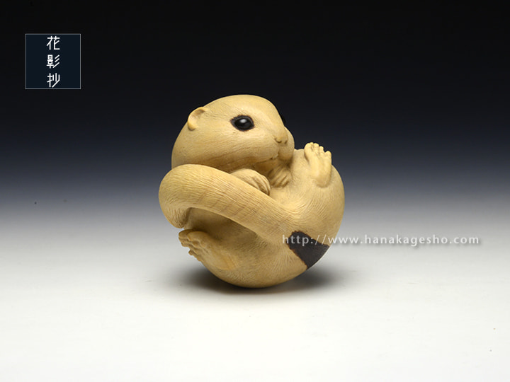 冬眠から目醒めたヤマネの起き上がるところを根付にしました。