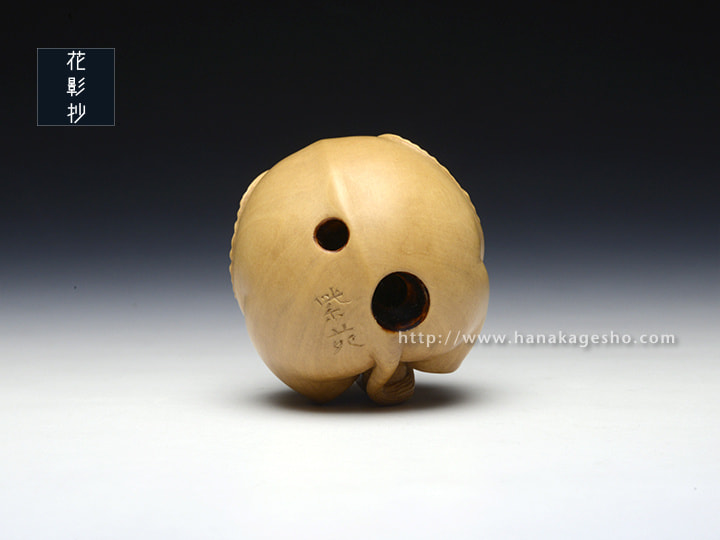 漆使用(紐穴の中)。「木彫根付選集2025」にて発表。