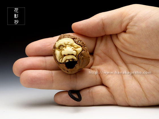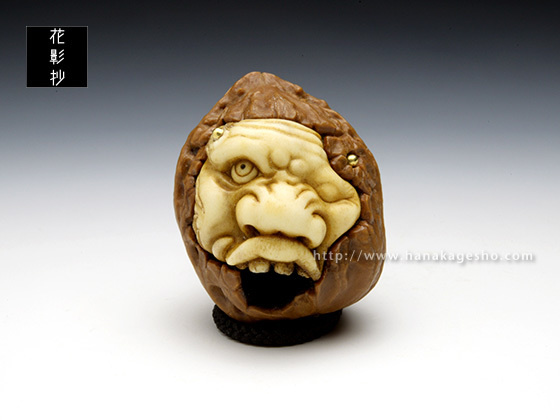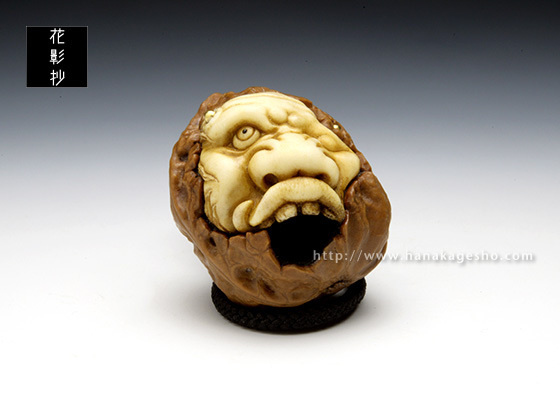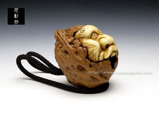 胡桃殻、蝦夷鹿角、象嵌:真鍮、黒水牛角
