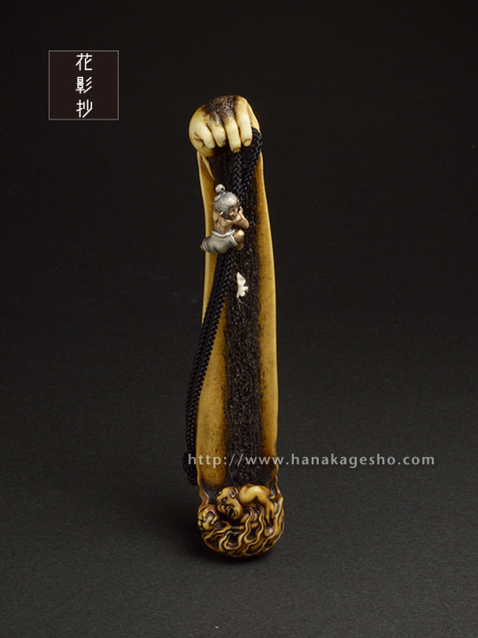 蝦夷鹿角 象嵌:黒檀