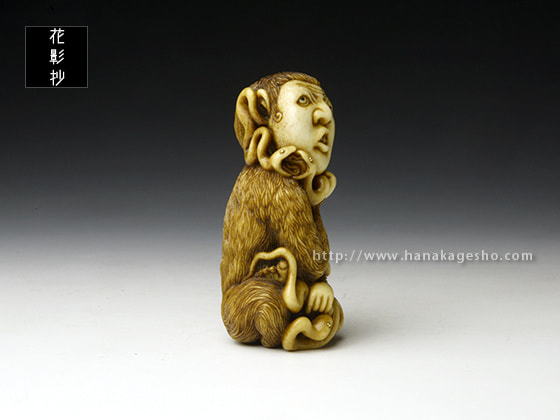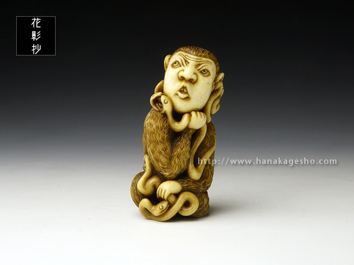 そのシャーマンたちは全てが女性で、数十年に一度、全身を黒い毛に覆われた女児が生まれ、雨神“雨師”として育てられていた。雨師は出生の刹那、両鼻腔の奥深くへ小さな蛇の卵を挿入される。 数年の後、脳内で成長しアストラル体へと昇華変容した二匹の蛇は、右耳孔より紅蛇、左耳孔より蒼蛇の姿で体外へ巣立つのだが、その二匹の蛇が雨師により自在にハンドリング可能となった頃合い、再び両鼻腔より小さな蛇の卵が挿入される。そして数年の後、紅蛇二匹、蒼蛇二匹、計四匹となったアストラル体の蛇が雨師の体内外を自在に円環するようになるころ、雨師の成長は止まり、シャーマンたちの超自然力を増幅させるための加速器“雨師妾”が完成するのだ。強大な力にリスクは付き物で、長い雨師妾の歴史において一度だけ引き起こされた大災を期に、長老に伝わる雨師妾育成訓のなか最も冒してはならない、ただ一つの禁忌が記されることとなる。 それは“蛇を対面させる”こと、則ち高濃度に昇華変容された蛇形のアストラル体は接触した瞬間に対消滅の連鎖を誘発し、雨師妾は崩壊する……雨師妾の喪失によりシャーマンたちの超自然力は減衰、新しい雨師妾が誕生するまで数十年の間続いた過酷な天候は、抗うこと叶わぬ黒歯国を衰退させた。 この大災を人々は“黒歯国の雨師災”と呼び今も語り継いでいる」(至水) |