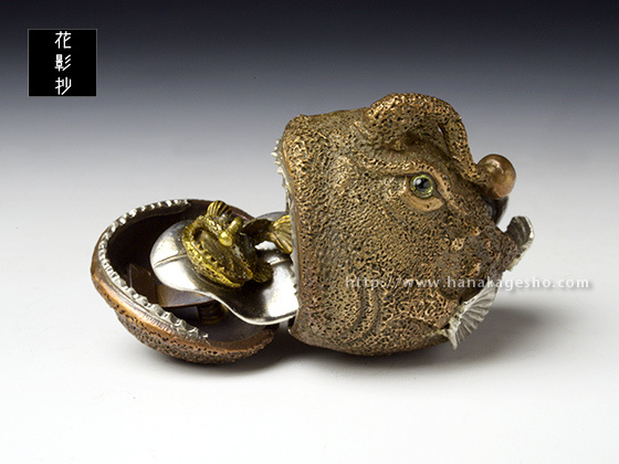 ブロンズ、真鍮、シルバー、ブルートパーズ(眼)、ブルームーンストーン(提灯)