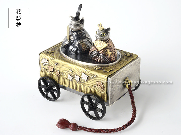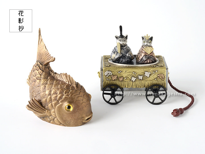 ブロンズ、銀、真鍮、漆焼付 象嵌:シトリントパーズ、ペリドット