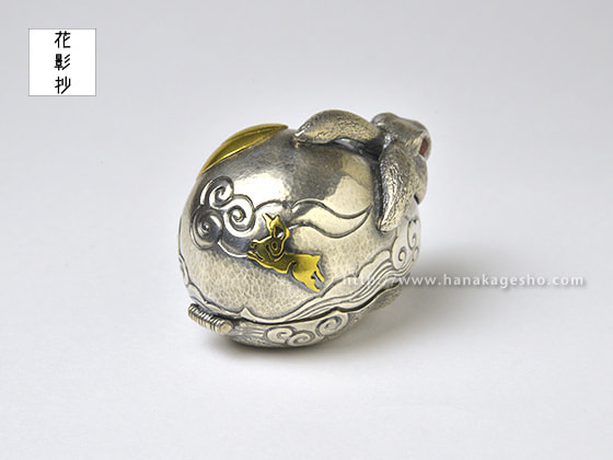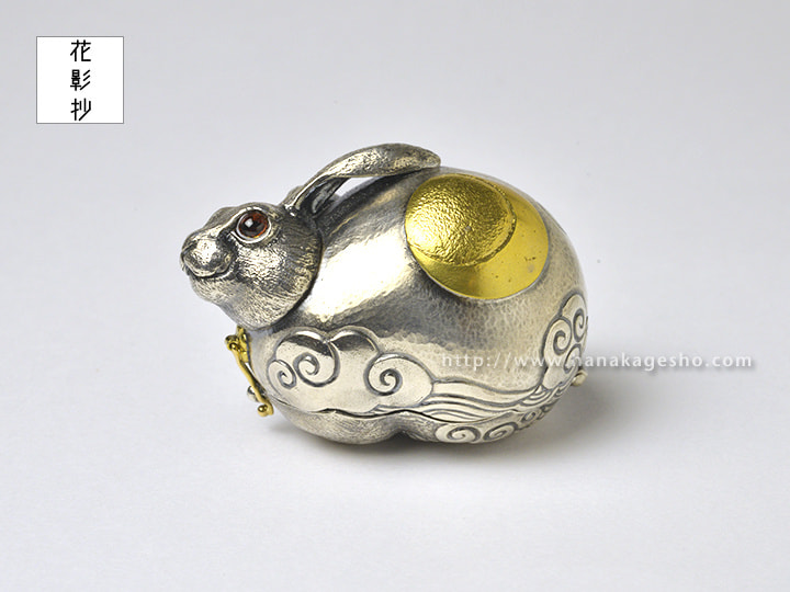 作品名は欣喜雀躍をもじっています。喜びで兎がぴょんぴょん跳ねているという意味です。中に入ったパーツを組むと「喜」の文字になります。(罠兎)