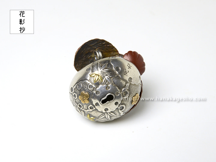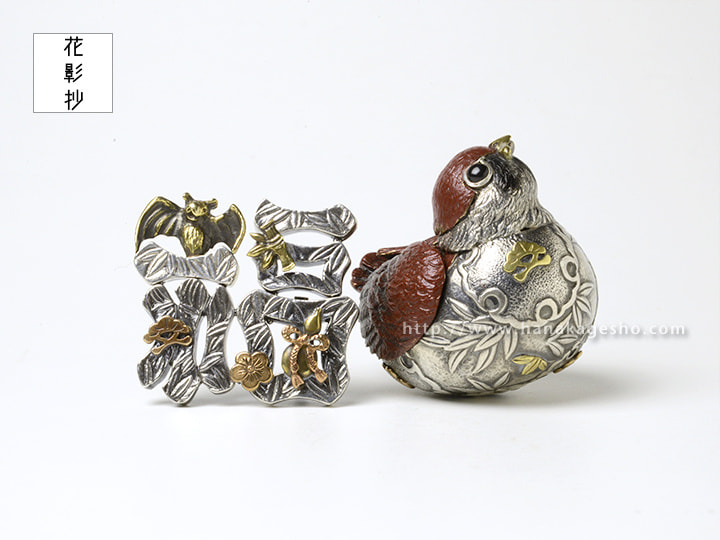 お腹の中のパーツを組み立てると「福」の字になります。福の字には、蝙蝠・瓢箪・松竹梅を散りばめています。(罠兎)