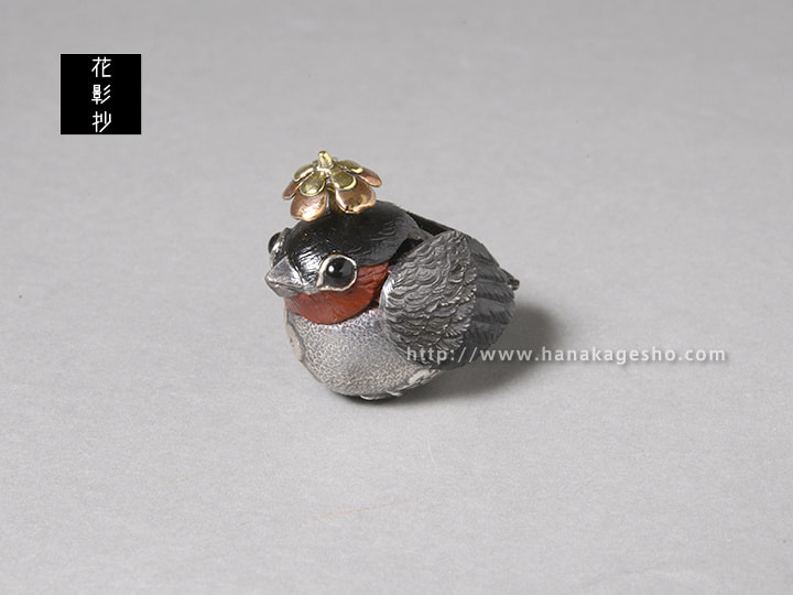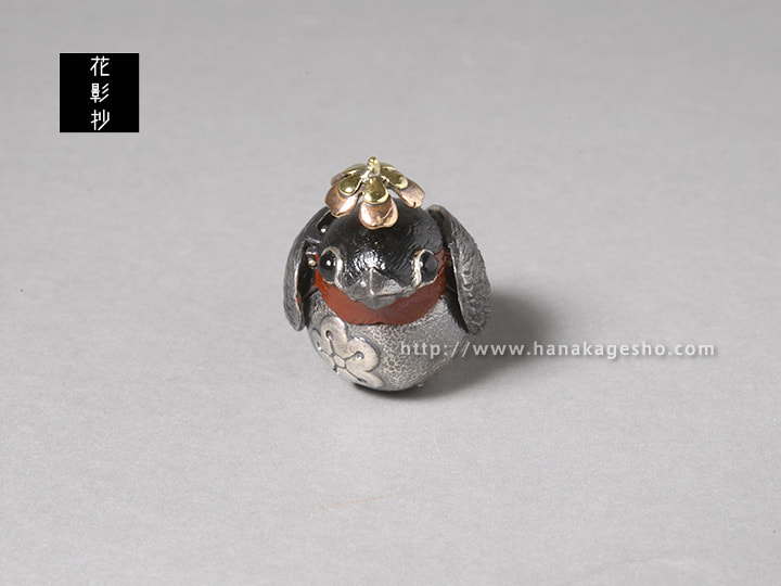 「鷽(うそ)は、嘘(うそ)との語呂合わせから悪い事を「うそ」にして「吉(よし)」に替えるという縁起物です。天神様のお使いの鳥で幸運を招くともされています。天神様にちなんでお腹に梅文様を彫刻し頭の上にも梅の花を乗せています。梅の花を押すと羽をパタパタと羽ばたかせ幸運を呼び込みます。(罠兎)