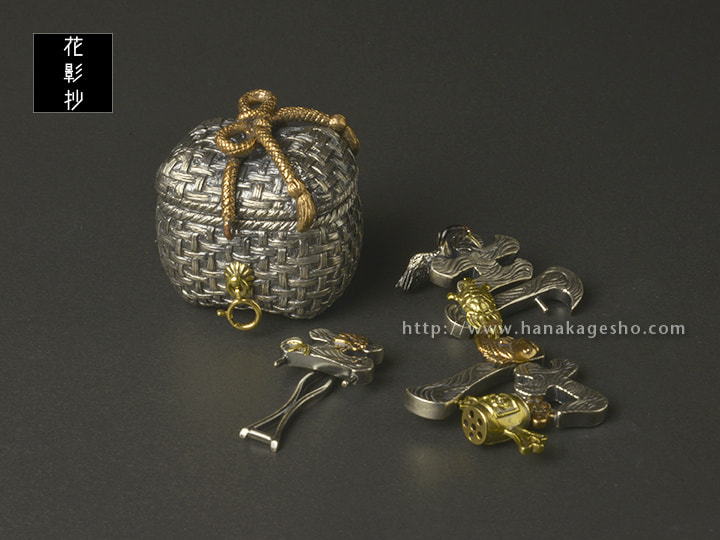 浦島太郎の玉手箱。中に入ってるパーツを組むと「壽」の文字になります。浦島太郎の元となった御伽草子の物語では玉手箱を開けた太郎は鶴になって蓬莱山に向かうという結末です。「壽」の文字はそれをイメージしています。(罠兎)
