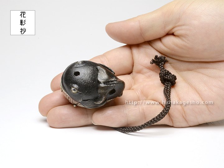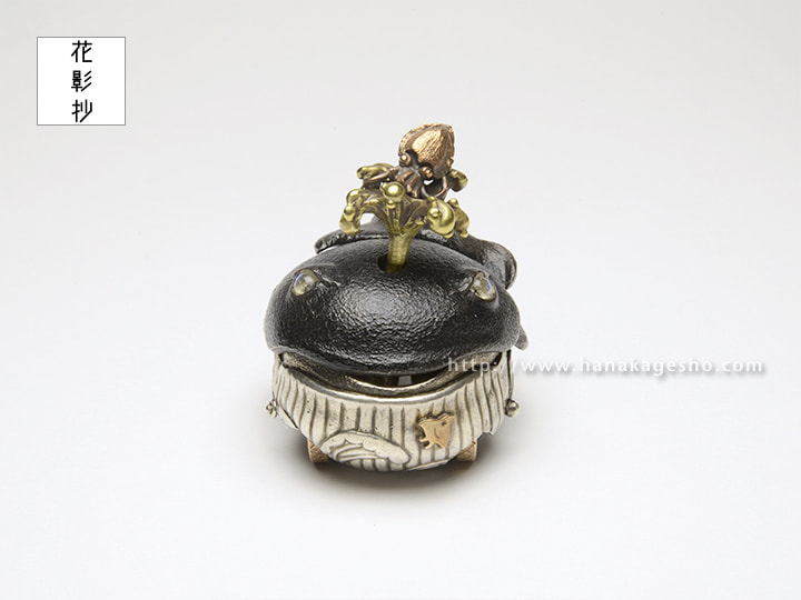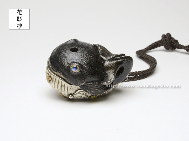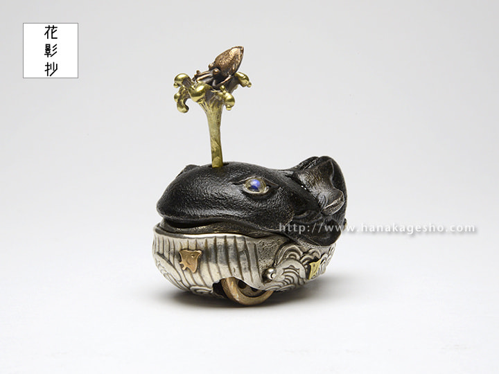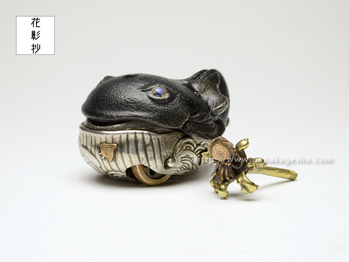 銀、青銅、真鍮、ブルームーンストーン、漆焼付、エポキシ樹脂(黒目部分)